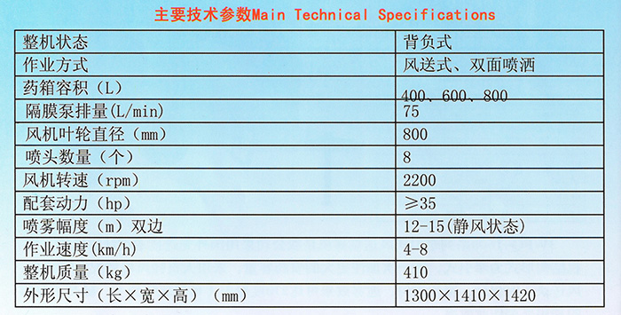 2.风量大、射程远、适用行距宽、枝叶茂密的果园。