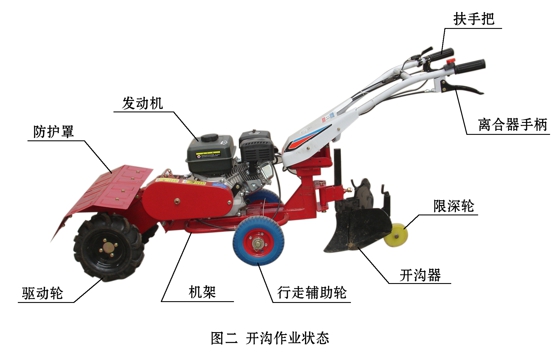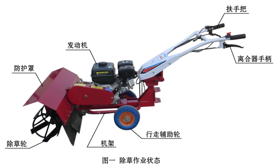 该机设计合理,结构紧凑,扶手把高度4档调整,左右180度可调,操作舒适方便,作业部件插销连接,换装方便快捷。主要用于温室大棚、果园、及丘陵狭小地块旋耕、锄草和在已旋或已耕地块上开沟作业。