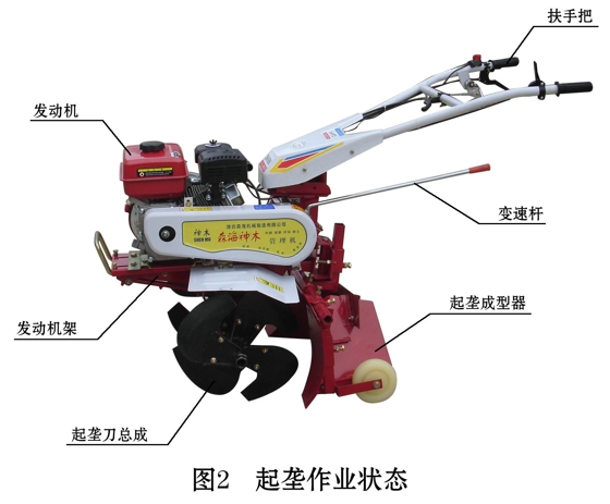 该机体积小、结构紧凑,特别适用于小块水田、旱田旋耕作业;扶手把高度4档调节定位,左右180度水平旋转定位;高低档作业,操作灵活方便;采用双轴驱动,前轴作业、后轴行走,安全可靠。主要用于山区梯田、丘陵旱田、南方水田、蔬菜瓜果大棚、果园旋耕、中耕除草。
